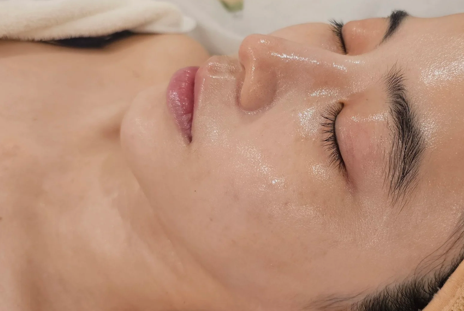 A nourishing cream is used during the facial massage to support skin regeneration and hydration. The massage helps stimulate circulation, soften facial tension, and improve the appearance of facial contours.